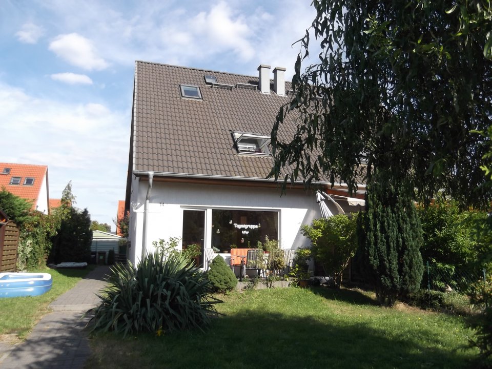 Zum Haus gehört ein kleiner Garten. In unmittelbarer Nähe sind Spielplätze.
